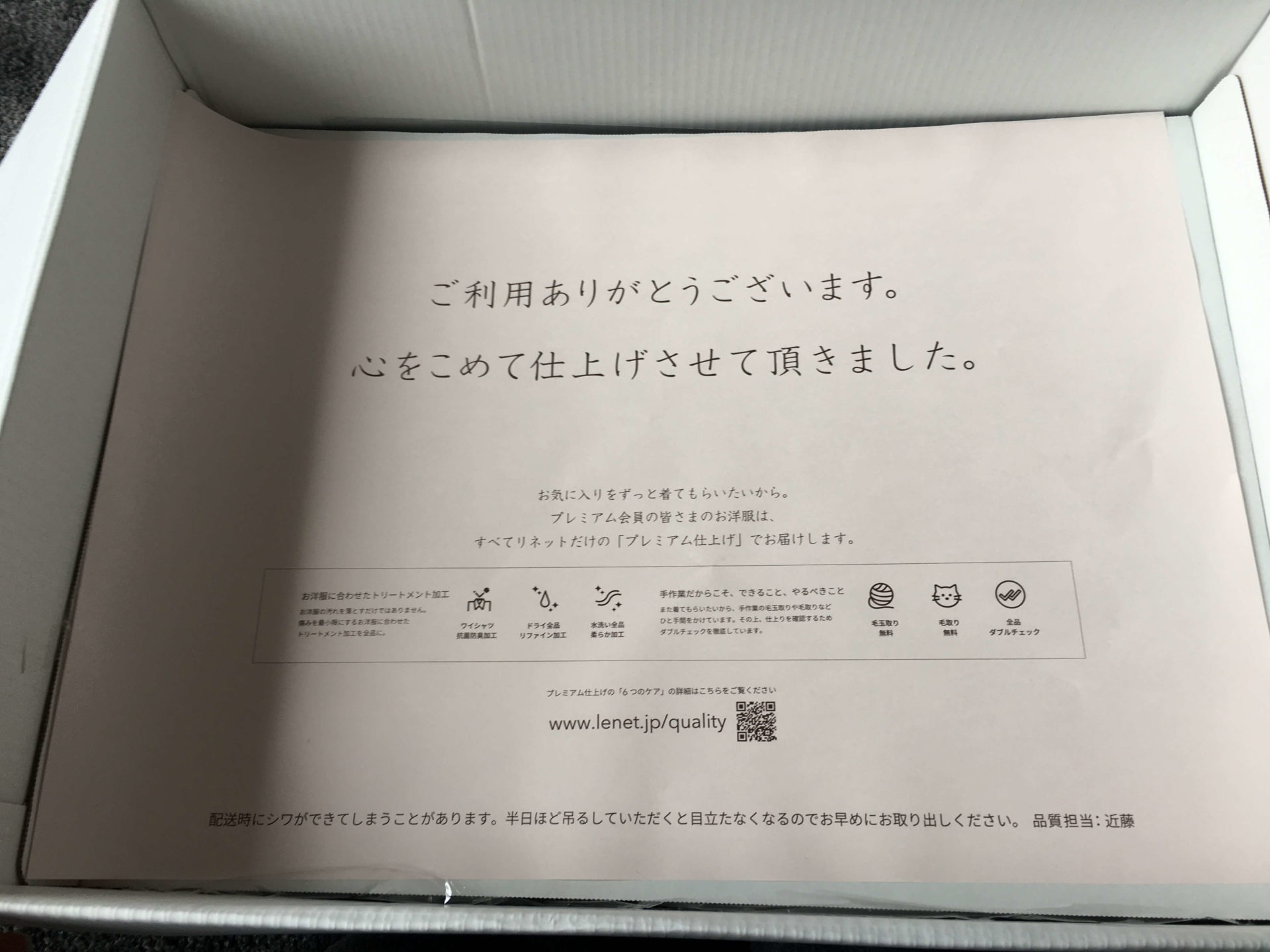 予定通りクリーニング品が到着
