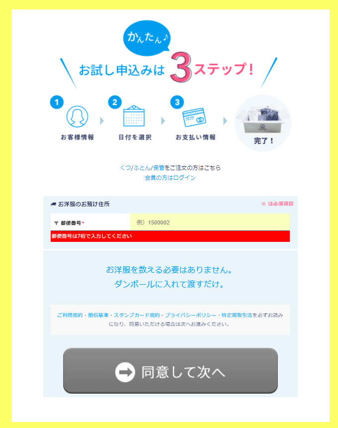 専用袋にクリーニング品を入れてコンビニに持っていくだけなのでとっても簡単です!