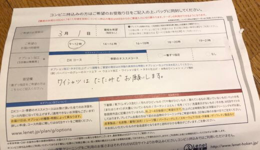 クリーニング品と一緒に、コンビニで出す用の袋と伝票が入っているので、次回からはもっとスムーズにクリーニングに出すことが出来きます☆