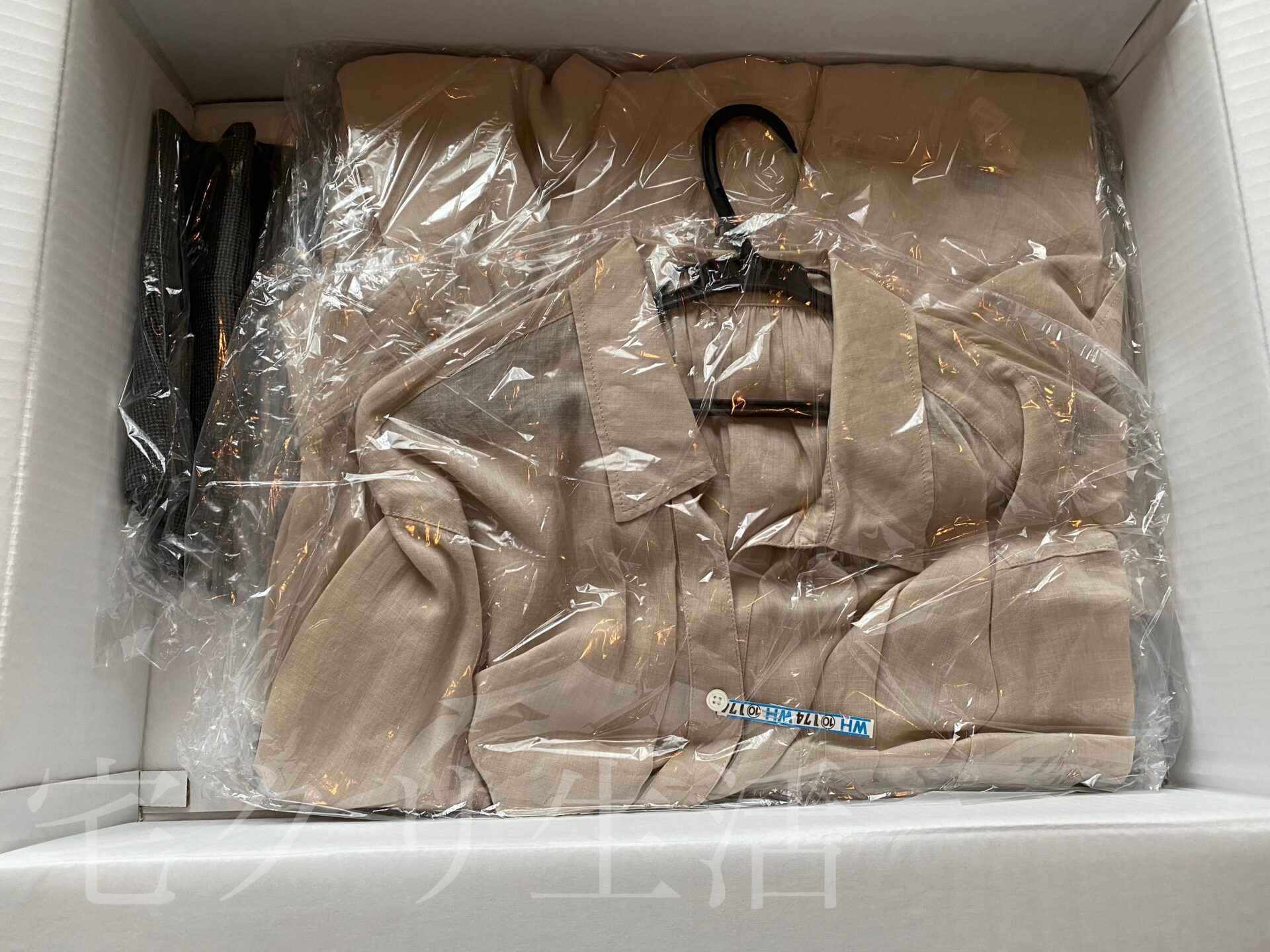 下にその他の衣類が入っていました。スーツの上と麻のシャツはハンガーがついていましたが、スーツの下はたたみで入っていたのが地味に不便でした。