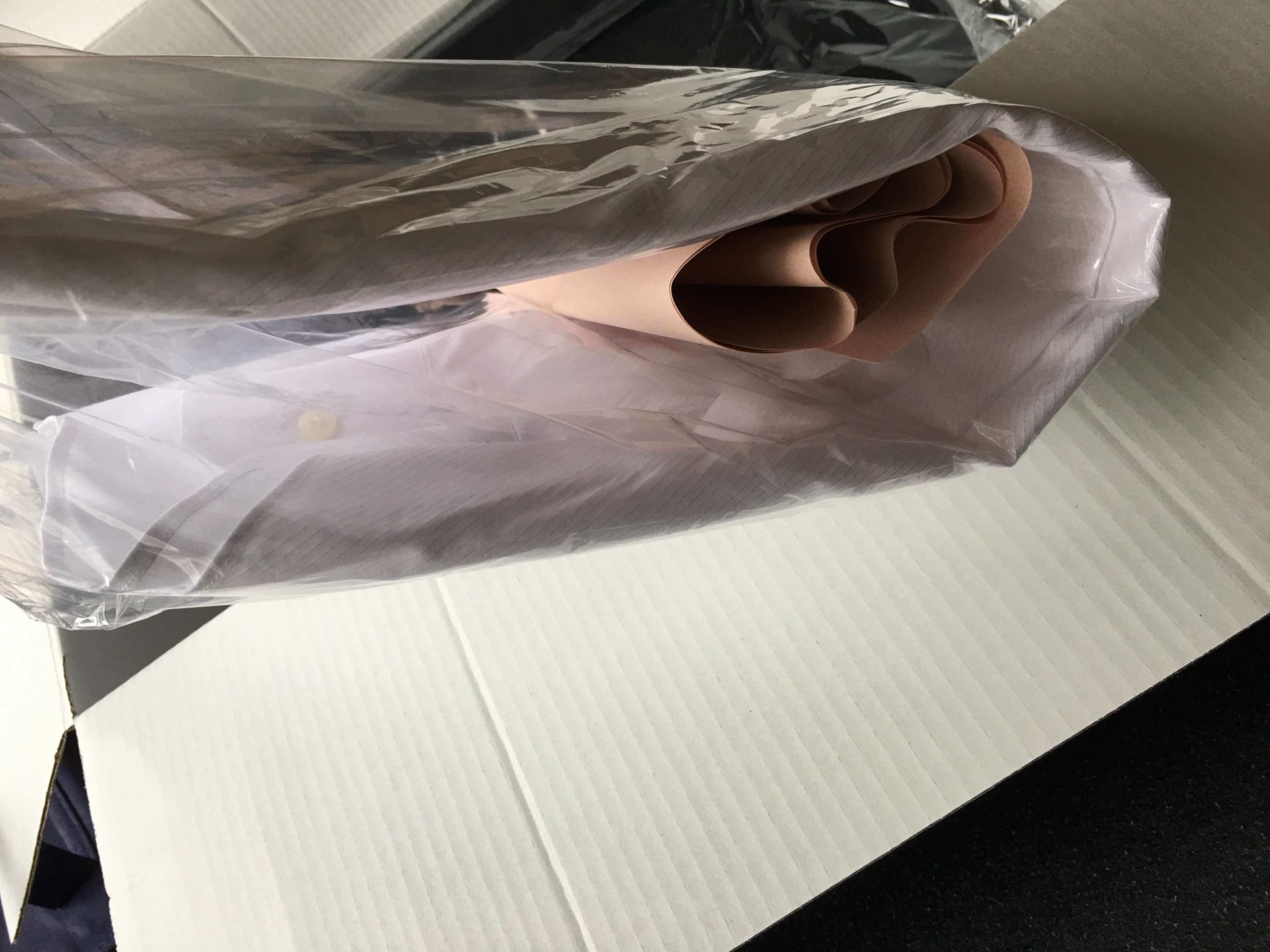 しかし専用バックでの配送の場合は、小さなバックに詰め込まれますからダンボールに比べてシワや折り目は付きやすくなります。
